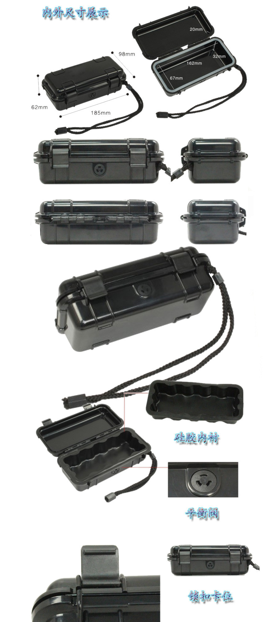 簡介:廣泛用于傳媒、公安、消防、軍隊、航空、戶外攝影、野外考察、科學(xué)探測等眾多領(lǐng)域的高端儀器、儀表。具有高強(qiáng)度、高抗壓沖擊、防潮、絕對密封、防塵、防水等特點(diǎn)。